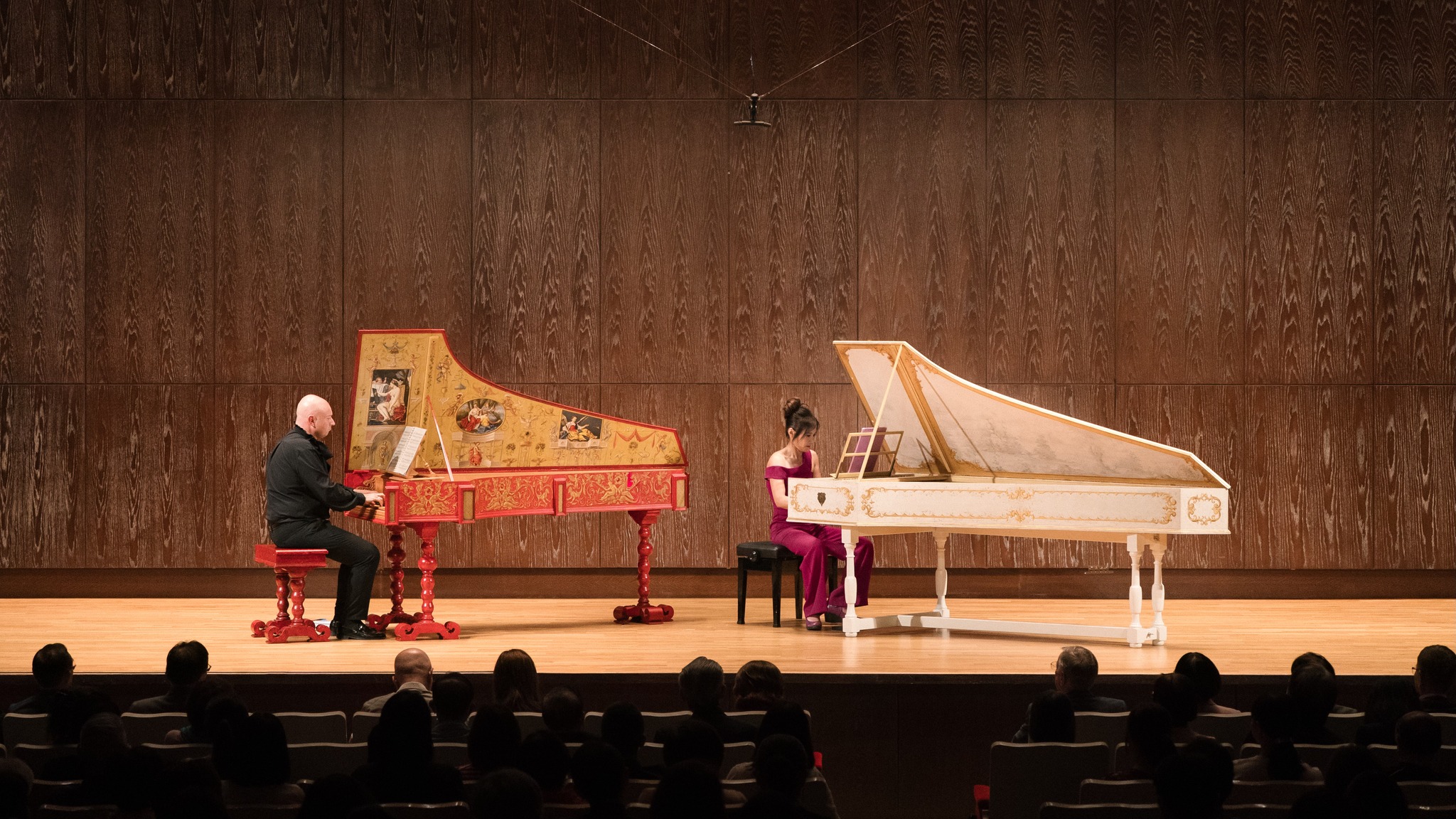 Tra le gradi tele esposte, come al centro di un’area, i due musicisti si sfidano a colpi di brani alla tastiera: tratti dall’epoca barocca, questa raccolta di sonate e concerti fanno dialogare i due strumenti in tutte le loro potenzialità espressive, lasciando grande spazio all’improvvisazione e alla sfida tra gli artisti.